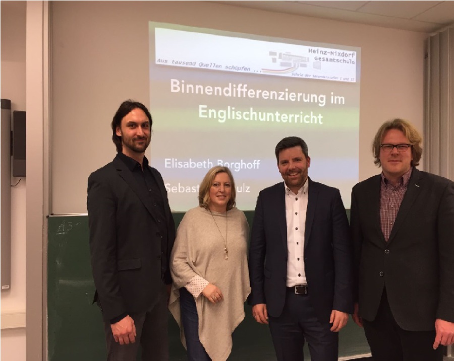 Auf Einladung des Instituts für Anglistik und Amerikanistik der Universität Paderborn referierten Elisabeth Borghoff und Sebastian Schulz von der Heinz-Nixdorf-Gesamtschule über Binnendifferenzierung im Englischunterricht.