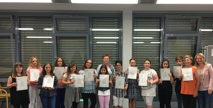 16 Schüler und Schülerinnen des Jahrgangs 6 der Heinz-Nixdorf Gesamtschule haben das Fremdsprachenzertifikat „YLE Movers (Young Learners English Test)“ erhalten. Gemeinsam mit ihrer Englischlehrerin Daniela Meier haben sie sich ein Halbjahr lang im Förderunterricht „Cambridge English for young students“ auf die Englischprüfung vorbereitet. Inhaltlich geht es darum, individuelle Fähigkeiten im Bereich der Kompetenzen Hörverstehen, Lesen und Schreiben als auch beim Sprechen unter Beweis zu stellen. Alle 16 Teilnehmer/innen haben die Prüfung bestanden, 9 Schüler und Schülerinnen erhielten sogar die Auszeichnung „outstanding“ (herausragend).