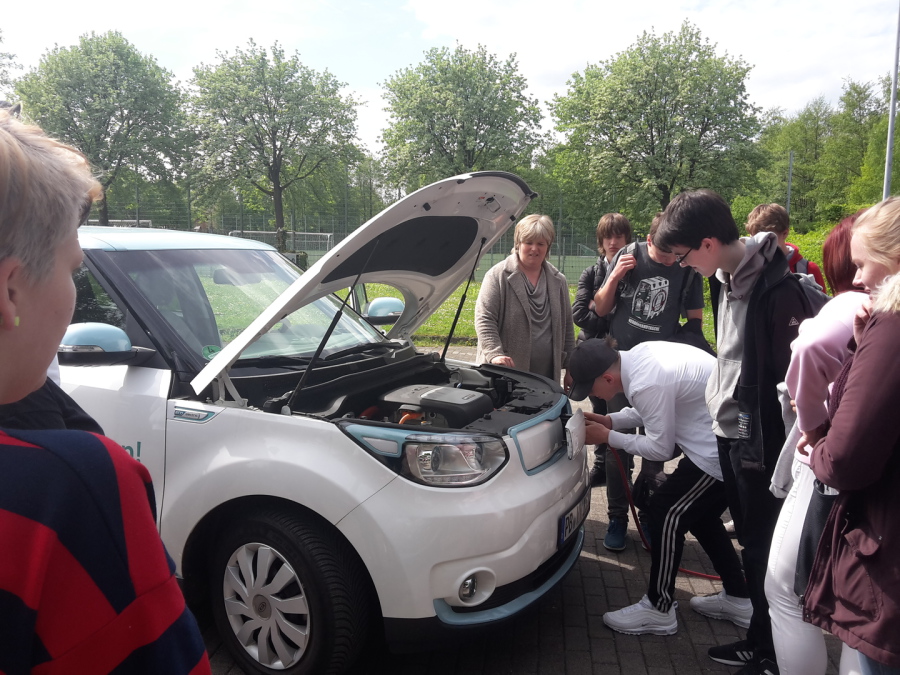 Den Schülerinnen und Schülern des MINT-Kurses des Jahrgangs 10 war es durch die Zusammenarbeit mit dem regionalen Netzbetreiber Westfalen Weser Energie nun möglich sich genauer mit der Thematik auseinanderzusetzen. Abschließend wurde es den Schüler sogar ermöglicht, eine kleine Spritztour mit einem Elektroauto zu unternehmen.