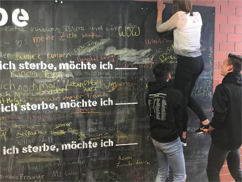 Im Rahmen des Kunstunterrichts nahmen die Schülerinnen und Schüler des Jahrgangs 10 zusammen mit ihrer Kunstlerhrerin an dem Projekt "Before I die" teil.