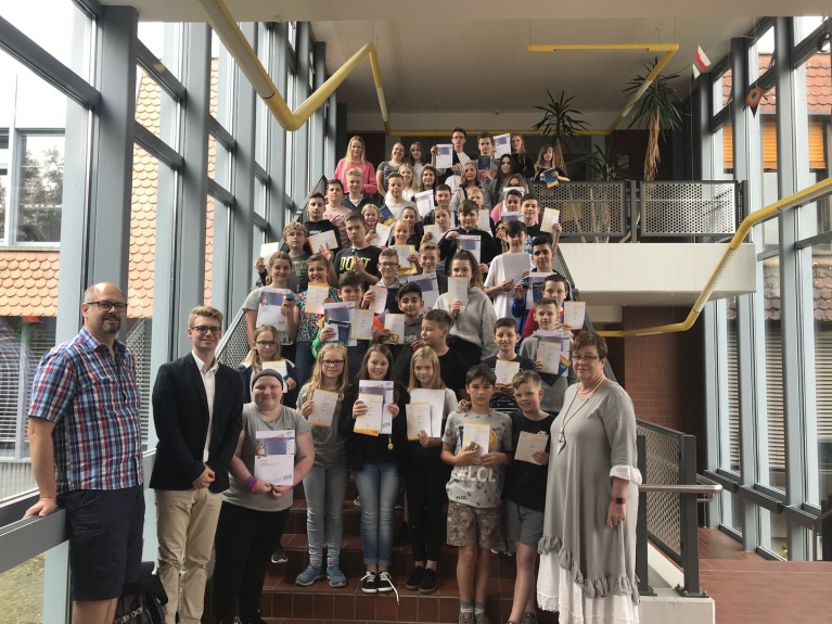 „Die SchülerInnen und Schüler haben Mut bewiesen, sich dieser Herausforderung zu stellen“ , freut sich Schulleiterin Andrea Reck, die es sich nicht nehmen ließ die Übergabe persönlich vorzunehmen.
