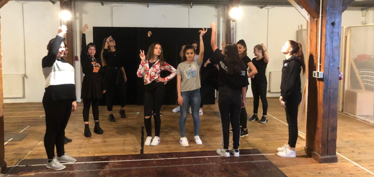 Unser DG-Kurs nutzte die Möglichkeit, einen intensiven Tag am Theater zu erleben. Es begann alles im Theateraktiv im Riemekeviertel. Dort besuchten wir bei Workshopleiter Steven W., der Theaterpädagoge ist, einen Vorbereitungworkshop für das Theaterstück „We have to laugh before midnight”. Viele interessante Übungen zum deutlichen Sprechen und expressiven Spielen brachten uns zum Lachen und ins Schwitzen.