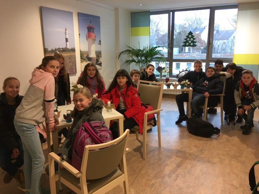 Einige Patienten waren derart gerührt, dass sie einen kleinen Obulus für die Klassenkasse stifteten – doch auch hier war sich die Klasse 7d sofort einig: Dieser Betrag wird – wie auch der Erlös der verkauften Engel am Tag der offenen Tür der HNGe selbst – an die „Aktion Lichtblicke“ gespendet. So ist für diese lokale Spendenaktion eine stolze Summe von insgesamt 120€ zusammengekommen – ein neuer Rekord für die SchülerInnen des 7. Jahrgangs.