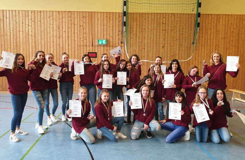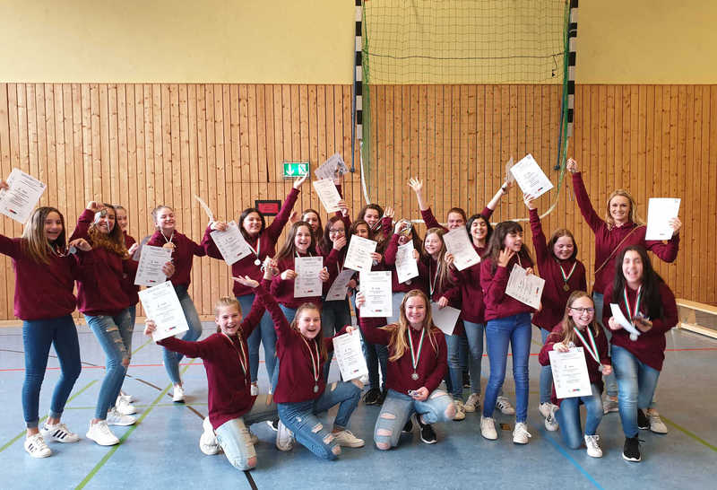 Die Leiterin der Gruppe Frau Neufeld, die Begleiterin Frau Oberzeiser und die ganze Schule sind unheimlich stolz auf euch, dass ihr uns die Silbermedaille geholt habt!
