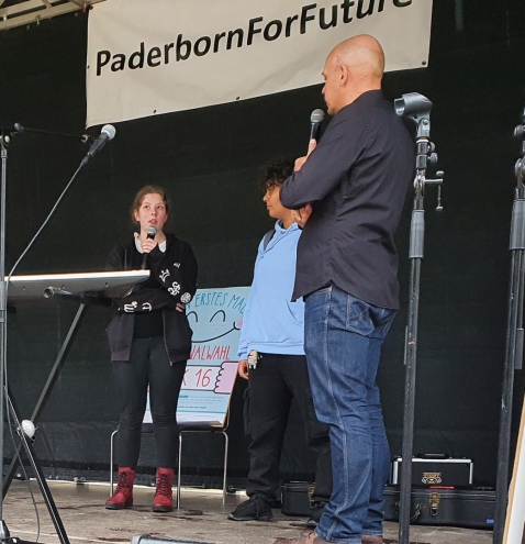 Am Donnerstag, den 03.09.2020, haben sich dann interessierte Schüler am Nachmittag vor der Stadtbibliothek getroffen, um das von der Organisation „PaderbornForFuture“ initiierte Rahmenprogramm zu besuchen. Neben einem Rahmenprogramm mit musikalischen Einlagen wurden den Schülerinnen und Schülern hier auch politische Reden von Jugendlichen geboten.