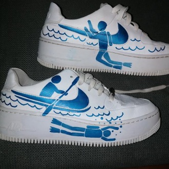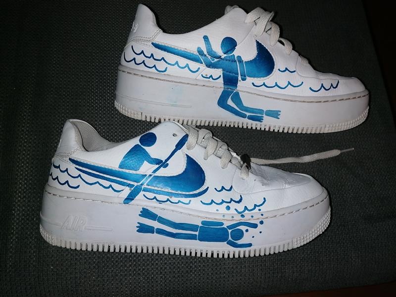 Siegerurkunde geehrt. Amin gestaltete einen Nike-Turnschuh, indem er das Nike-Logo zu Wassersport-Bildern umdeutete, z. B. zu einem Kanu oder einem Boot.