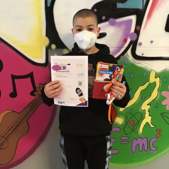 Amin Touil aus der Klasse 6d konnte die Jury mit seinem Beitrag überzeugen. Er gewann in der Kategorie C (5./6. Klasse) den 5. Platz und damit einen Sachpreis. Zudem wurde Amin mit einer