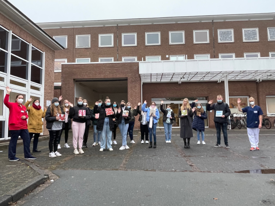 SchülerInnen der Heinz-Nixdorf-Gesamtschule bringen die 4 Tonie-Boxen zur St. Lousie Klinik Paderborn