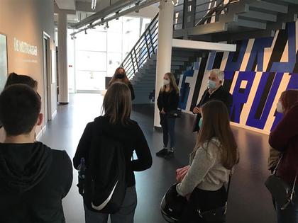 Jugendliche besuchen die Ausstellung „Der Weltenlauscher“ von Erwin Grosche und erfahren dabei eine ganz andere Perspektive von der Welt.