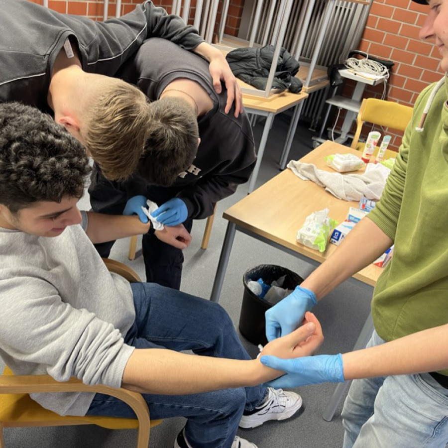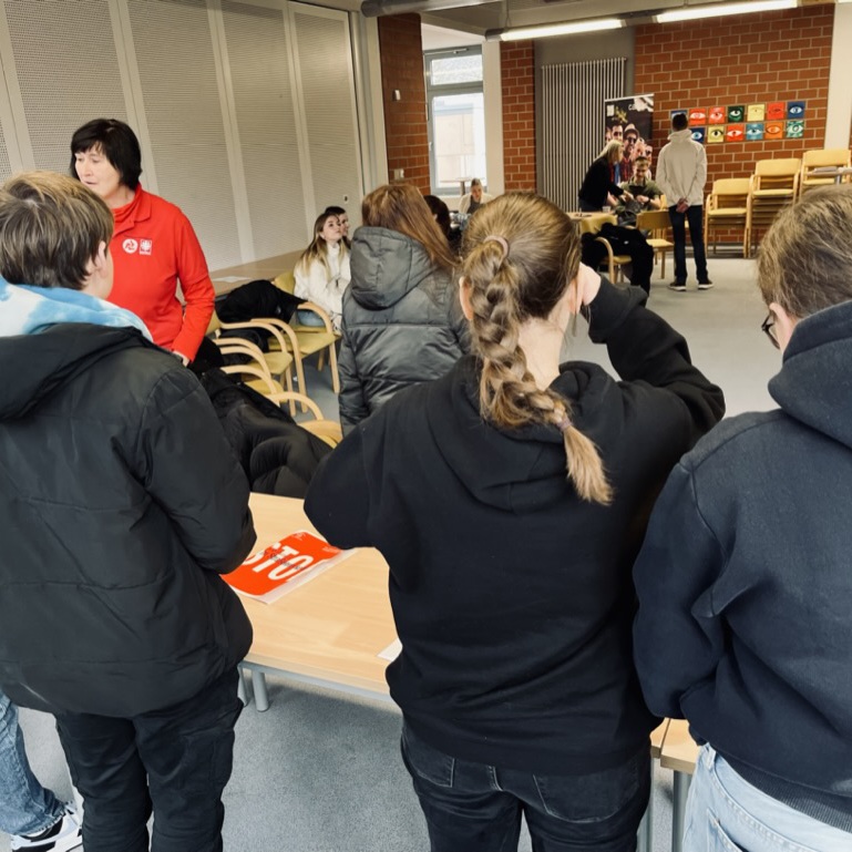 In einem zweistündigen Workshop lernten die Schülerinnen und Schüler unseres Jahrgangs 10 mit Ausbilderinnen der Caritas zum Thema Demenz. Die Lernenden konnten erfahren, wie es Menschen mit Demenz geht, wie man sie betreuen und unterstützen kann. Die Caritas stellte darüber hinaus die Ausbildungsberufe der Pflegefachkraft und der Pflegeassistenz vor.