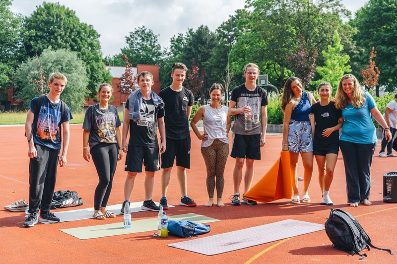 die Challenge, die insgesamt ca. eineinhalb Stunden dauerte. Dabei konnten Schülerinnen und Schüler so viele Sonnengrüße machen, wie sie sich zutrauten, und so viele Pausen, wie sie brauchten –