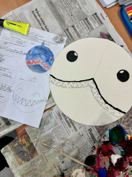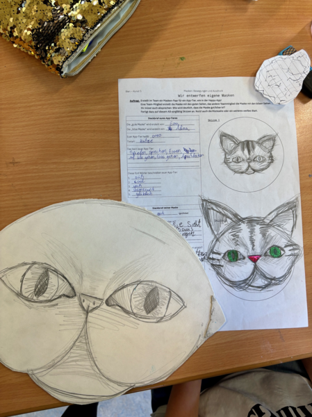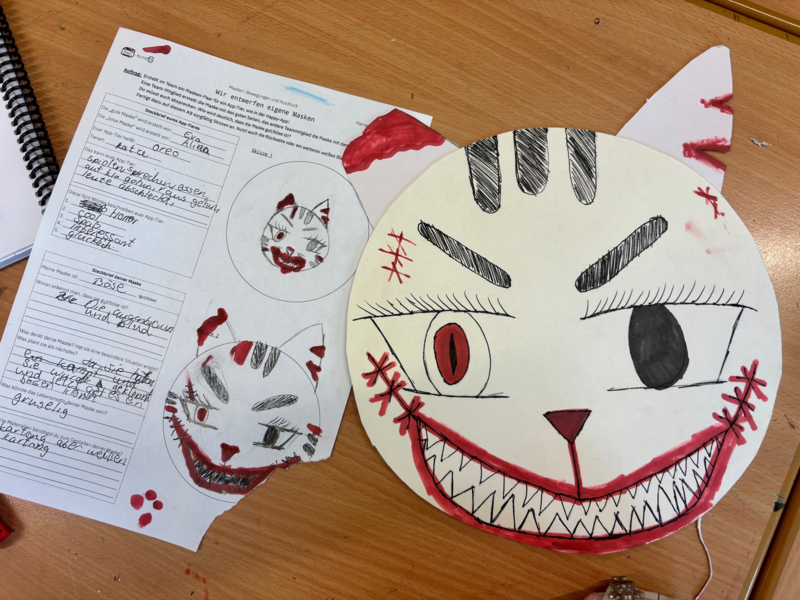 Die Klasse 5c hat ein spannendes Maskenprojekt durchgeführt. In Zweierteams gestalteten die Schüler Tiermaskenpaare: jeweils eine freundliche und eine böse Maske. Inspiriert wurden wir durch das Buch „HAPPY – der Hund im Handy“, das wir im Deutschunterricht gelesen haben. In diesem Buch kann man den virtuellen Hund „Happy“ streicheln, füttern und Spielzeug für ihn kaufen.