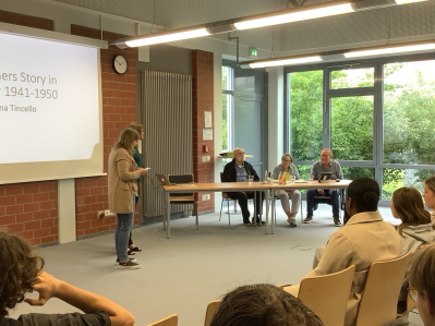Am Donnerstag, den 06.06.2024 erwartete die HNGe einen weit gereisten Gast, die Australierin Krysia Tincello. Sie war zusammen mit ihrem Mann Kevin Patterson nach Paderborn gekommen, um den Spuren ihrer Mutter Helena Tincello (geb. Korneluk) zu folgen und deren Lebensgeschichte zu erzählen. 80 interessierte Schüler:innen, Lehrer:innen und ehemalige Schüler:innen hörten ihrer Lesung in der Aula gespannt zu.
