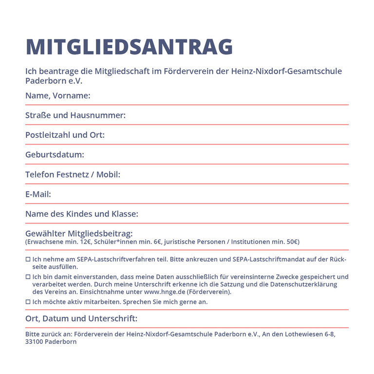 Frau Andrea Rüschenschulte ist leider aufgrund Ihres Umzuges von ihrem Amt zurückgetreten. Seit dem 5. Juni 2019 war sie 1. Vorsitzende des Fördervereins der Heinz-Nixdorf-Gesamtschule tätig und kümmerte sich um die Organisation und Durchführung von Aktivitäten des Fördervereins an diversen Schulveranstaltungen und unterstützte die Schule in vielen weiteren Punkten.