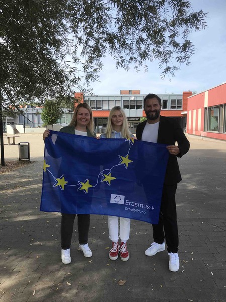Schulleiter Lars Schröder und die Koordinatorin für Erasmus, Daniela Meier, verabschiedeten die Schülerin ebenso wie die Beratungslehrer der EF, Christina Bunte und Dominik Kräkel, mit ihrem ganzen EF-Jahrgang und freuen sich mit ihr über die einmalige Erfahrung.