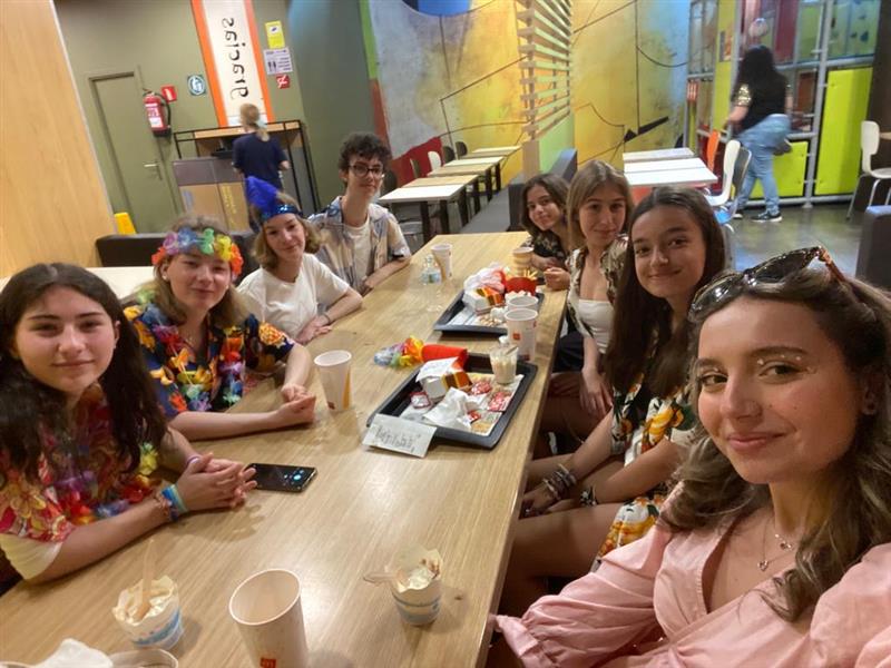 sind die Schüler/innen in die Innenstadt gegangen und haben in zwei getrennten Gruppen zu Abend gegessen (Bei uns gab es