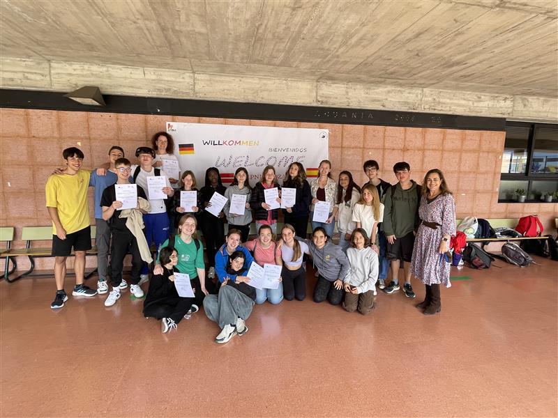 Schüler/innen mit einem Bus zur spanischen Schule gebracht werden. An der Schule haben bereits die Austauschpartner auf unsere Schüler/innen aus Deutschland gewartet. Der Koffer wurde der Schülerin,