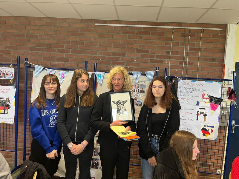Sehr traurig zeigten sich die französischen Schüler*innen darüber, dass der kleine Paul, der in den Jahren zuvor die Herzen der Franzosen erobert hatte, erstmalig nicht mitreisen konnte, da er kurz vorher verstorben ist. Es gab eine Hommage an ihn im Unterricht mit Gedichten, die die Schüler selbst geschrieben hatten und die von ihnen vorgetragen wurden. Frau Fröhleke wurde zudem eine Zeichnung von Paul überreicht, die ein bekannter Comiczeichner von ihm erstellt hat.