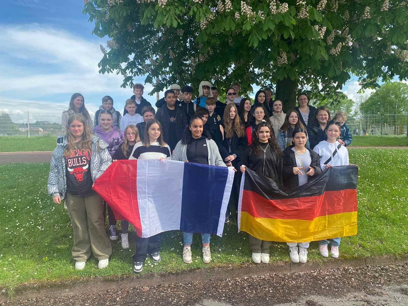 Unter dem Motto „Unser Austausch in Bewegung - Grenzen überwinden“ starteten am Sonntag den 07.05.23 18 Schüler*innen des Jahrgangs 8 und 9 erneut zur Frankreichfahrt nach Amiens, um mit den Schülern unserer Partnerschule Jean Moulin in Moreuil im Rahmen von Erasmus diverse Projekte zu aktuellen Themen zu bearbeiten und natürlich einen Einblick in den französischen Schulalltag und die Lebensweise zu bekommen.