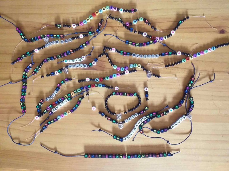 Am Mittwoch nahmen wir an verschiedenen Workshops in unserer Partnerschule teil, interviewten uns gegenseitig, gestalteten Freundschaftsbänder mit Botschaften und malten Freundschaftssymbole. Durch