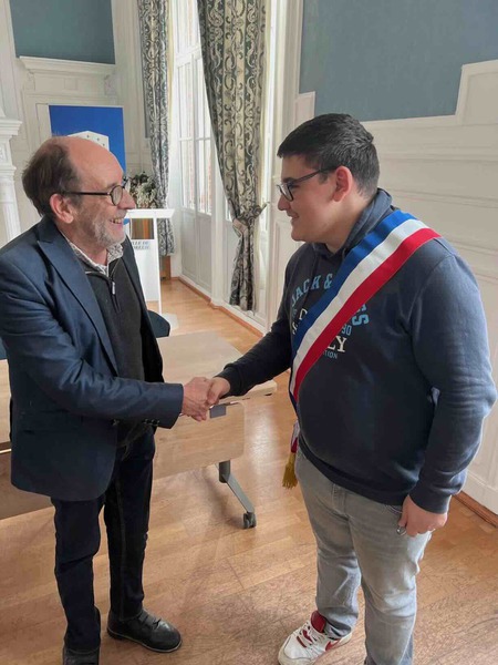 vertiefen. Einem Schüler wurde eine besondere Ehre zuteil. Der Bürgermeister legte ihm sein Amtszeichen, die Schärpe, um. Anschließend besuchten wir den deutschen Soldatenfriedhof in Morisel. Dort