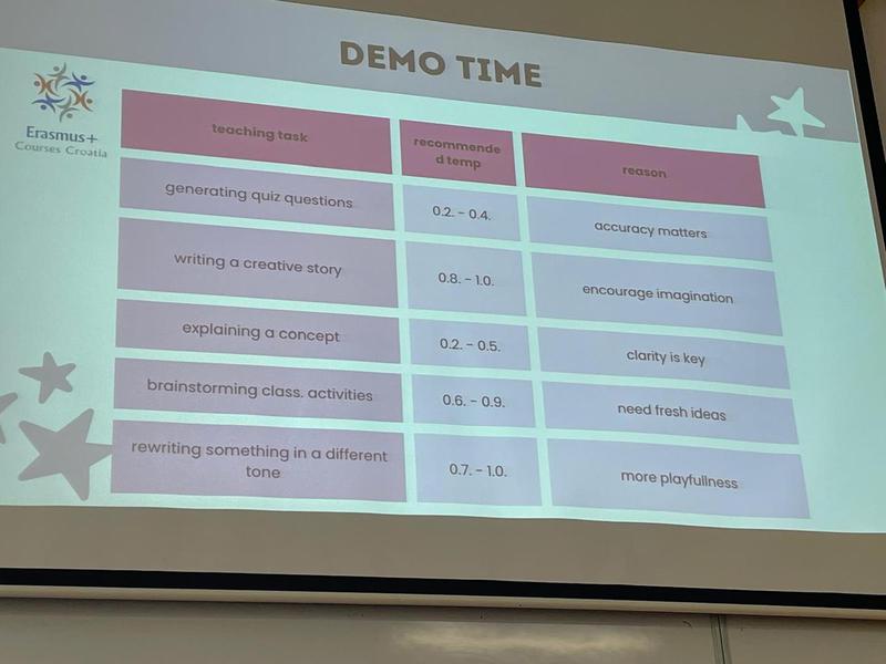 In den Workshops lernten wir nicht nur den Umgang mit Chatbots wie ChatGPT, Perplexity und Copilot, sondern auch die Potenziale und Herausforderungen dieser Tools im Unterricht. Besonders spannend war das Erlernen, wie man durch die richtigen Prompts den Unterricht individueller gestalten kann. Weitere Themen waren Programme zur Bild-, Video- und Musikgenerierung wie Adobe Firefly, Vidnoz und My Simple Show, sowie Tools für Lesson Design wie Quizizz, Eduaide und Diffit, die uns bei der Gestaltung interaktiver Lerninhalte unterstützen können. Die Fortbildung zeigte uns, wie diese Werkzeuge den Unterricht abwechslungsreicher und kreativer machen können, indem sie den Lehrkräften die Möglichkeit geben, maßgeschneiderte Materialien zu erstellen.