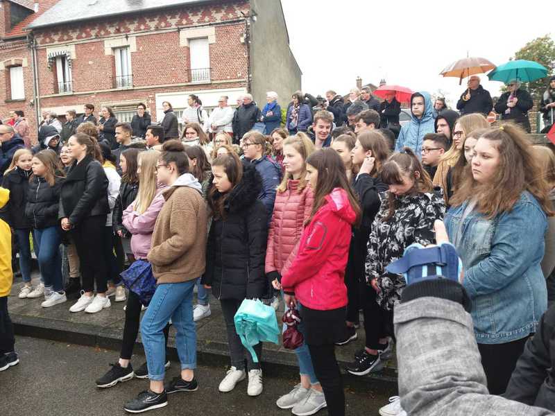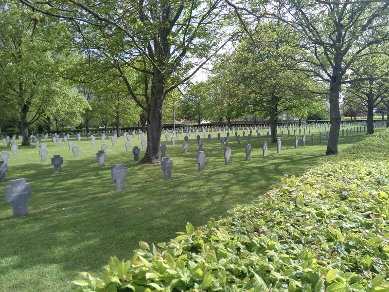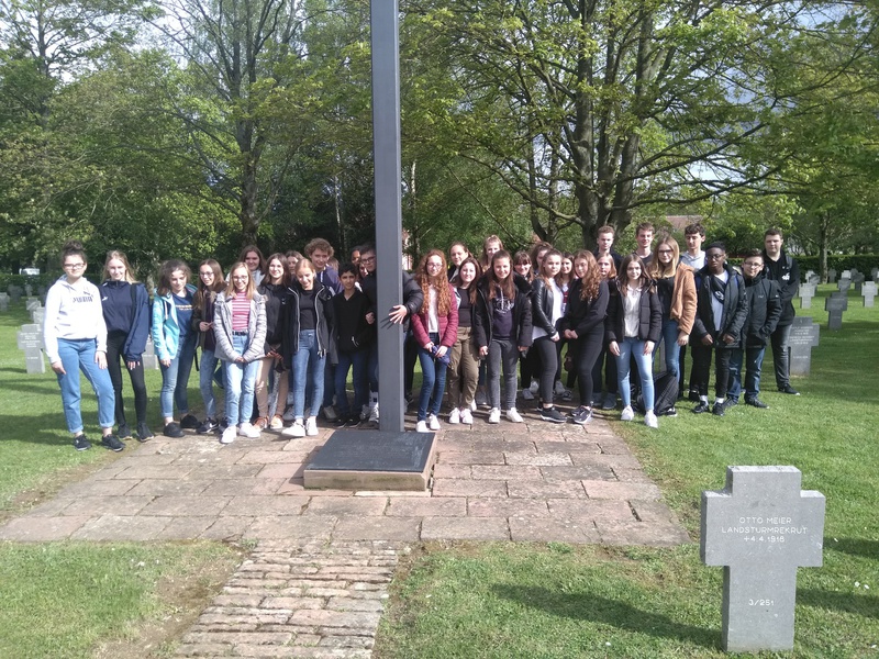 In Frankreich ist der 08. Mai ein Feiertag, an dem an das Ende des 2. Weltkrieges und der Befreiung des Nationalsozialismus gedacht wird. An diesem Tag trafen wir zum ersten Mal im Rahmen der offiziellen Feierlichkeiten am Rathaus in Moreuil auf unsere französischen corres. Dort wurden wir von den stellvertretenden Bürgermeistern empfangen und zu einem deutsch-französischen Picknick eingeladen. Anschließend verbrachten die Schüler ein wenig Zeit in den französischen Familien, bevor wir uns alle am deutschen Soldatenfriedhof in Morisel wiedertrafen. Dort erfuhren wir, welches Leid und welche Verwüstung die beiden Weltkriege über die Region gebracht haben und warum es so wichtig ist, dass Frankreich und Deutschland daran arbeiten, dass sich so etwas nicht noch einmal wiederholt. Der Président Départemental der Association Nationale des Anciens des Forces Françaises en Allemagne et en Autriche, Daniel Varin, erklärte uns, dass auf dem Friedhof, der nur einer von vielen in Nordfrankreich ist, über 2000 deutsche Soldaten aus dem 1. Weltkrieg begraben wurden.