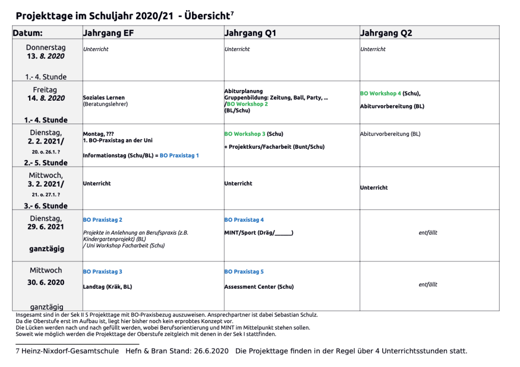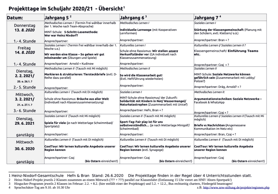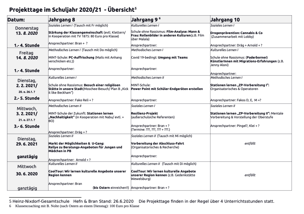 In jedem Jahr setzt sich ein Planungsteam zusammen und organisiert die Projekttage für das kommende Schuljahr. Dabei werden sowohl die gemachten Erfahrungen berücksichtigt als auch die aktuellen Wünsche und Bedürfnisse eingebracht.