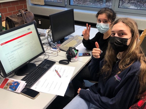 Weiterhin bewerben sich Schüler*innen der aktuellen Jahrgangsstufe EF wieder für das Förderprogramm „Studienkompass“, in dem besonders motivierte und begabte Lernende über einen längeren Zeitraum Unterstützung bei Ihrer Zukunftsgestaltung erhalten. An diesem Programm nahmen bereits zahlreiche Schüler*innen der Abiturjahrgänge 2021 und 2022 mit Erfolg teil, sodass die zuständige Mitarbeiterin Lisa Brüssau dieses gern erneut an der Heinz-Nixdorf-Gesamtschule präsentierte und die Schüler*innen zur aktiven Gestaltung eines Fragenkatalogs motivierte, der die Reflexionskompetenz schult.