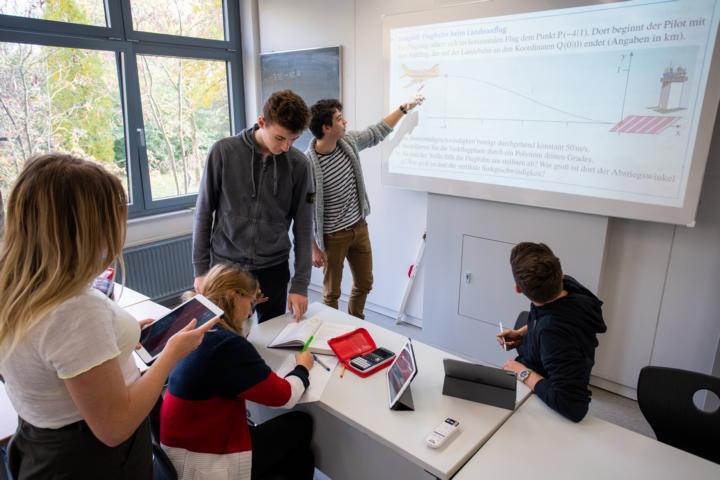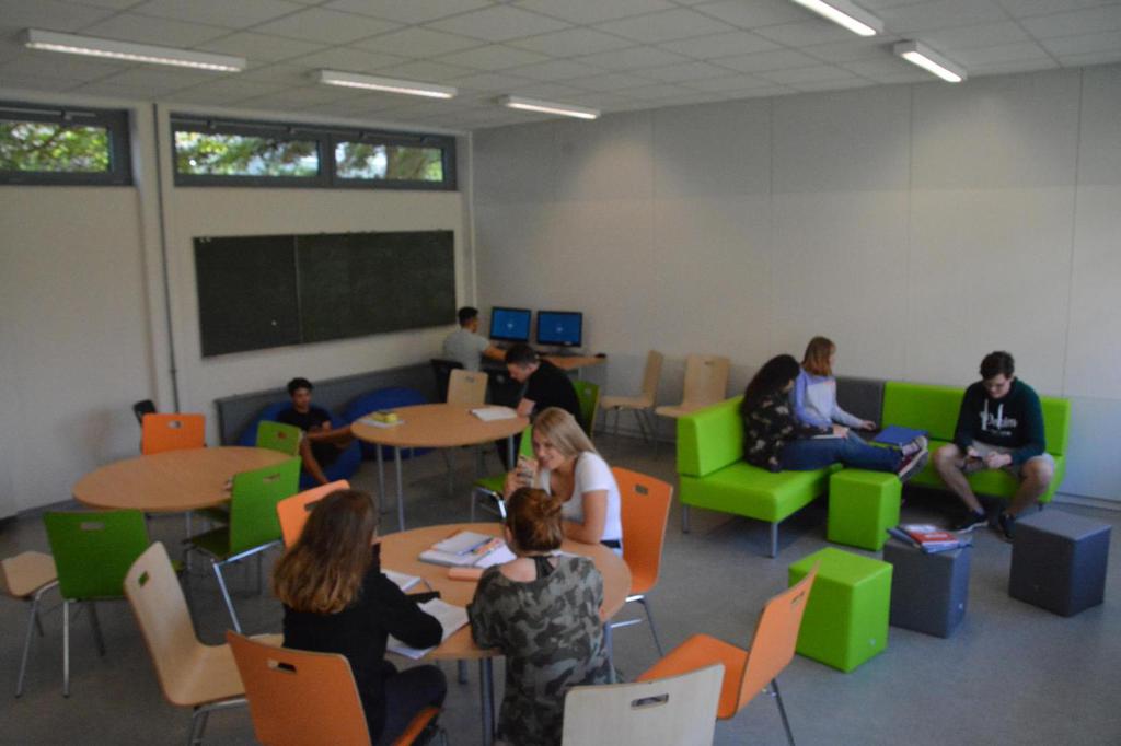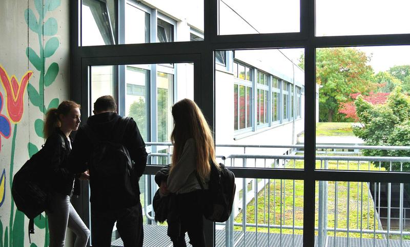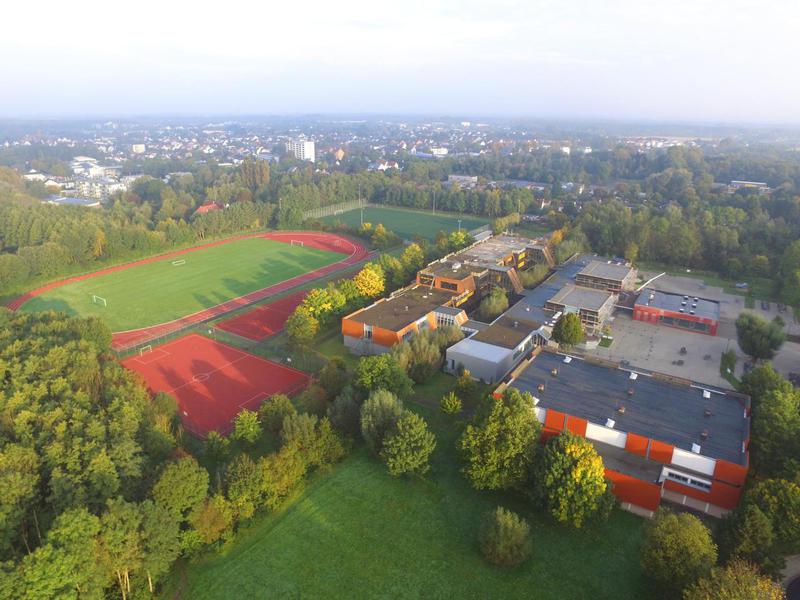 In der Oberstufe erwarten dich renovierte und mit neuen Medien ausgestattete Kursräume. Zudem kannst du deine Lernzeit im Selbstlernzentrum oder Aufenthaltsraum positiv nutzen. Der neu gestalteter Schulhof lädt zum Verweilen ein. Hier hast du auch die Möglichkeit zu vielfältigen sportlichen Aktivitäten während der Pausenzeiten (Basketball, Fußball, Calisthenics)