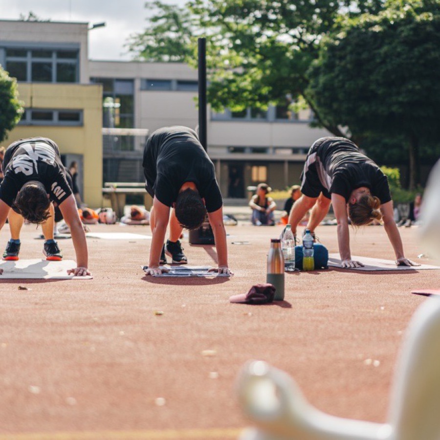 Dafür kam Yogalehrer Michael Sander von YOGA & FITNESS Paderborn und leitete die Schülerinnen und Schüler mit Tatkraft und Musik durch die zwölf Bewegungen jedes einzelnen Sonnengrußes und durch die Challenge, die insgesamt ca. eineinhalb Stunden dauerte. Dabei konnten Schülerinnen und Schüler so viele Sonnengrüße machen, wie sie sich zutrauten, und so viele Pausen, wie sie brauchten – einige wuchsen aber auch über sich hinaus und schafften es bis zum 108. Sonnengruß.