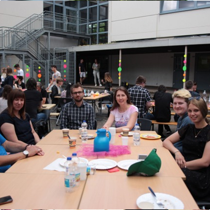 Mitorganisatorin Julia Schäfers freut sich über den Erfolg des Nachmittags: „Wir sind glücklich, dass viele Lehrkräfte den Einladungen unserer Schülerinnen und Schüler gefolgt sind und wir uns in positiver Atmosphäre und bei Sonnenschein austauschen konnten.“