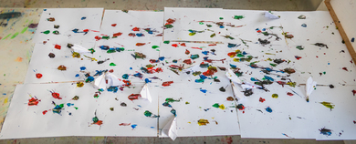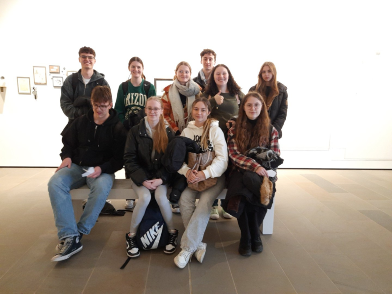 Der 23. März 2023 sollte für die Schüler:innen des Grundkurses Kunst in der Q2 ein besonderes Datum werden: Die letzte Kunststunde in ihrer Schullaufbahn verbrachten sie gemeinsam mit ihrer Kunstlehrerin Frau Himstedt-Keliny in der Städtischen Galerie in der Reithalle. Die aktuelle Ausstellung beschäftigt sich mit dem Thema „Bildmechanik und Kinetik“ und zeigt Werke der Künstler:innen Robert Michel (1897 – 1983), Friedrich Meckseper (1936 – 2019) und Tina Tonagel (geb. 1973). Hier konnten die Schüler:innen an das Unterrichtsthema „Rebecca Horn“ anknüpfen, die in ihren Installationen kinetische Elemente verwendet. Nach der Führung durch die Ausstellung arbeiteten die Schüler:innen praktisch unter der Leitung von Dietmar Walther. Sie falteten einen Papierflieger und bauten einen Pinsel in das Flugobjekt ein. Der Pinsel wurde in Acrylfarbe getaucht und dann aus einiger Entfernung auf große Bögen Papier geworfen. So entstand ein malerisch-experimentelles Bild mit zufälligen Farbspuren, das der Kunstkurs gemeinsam gestaltete.