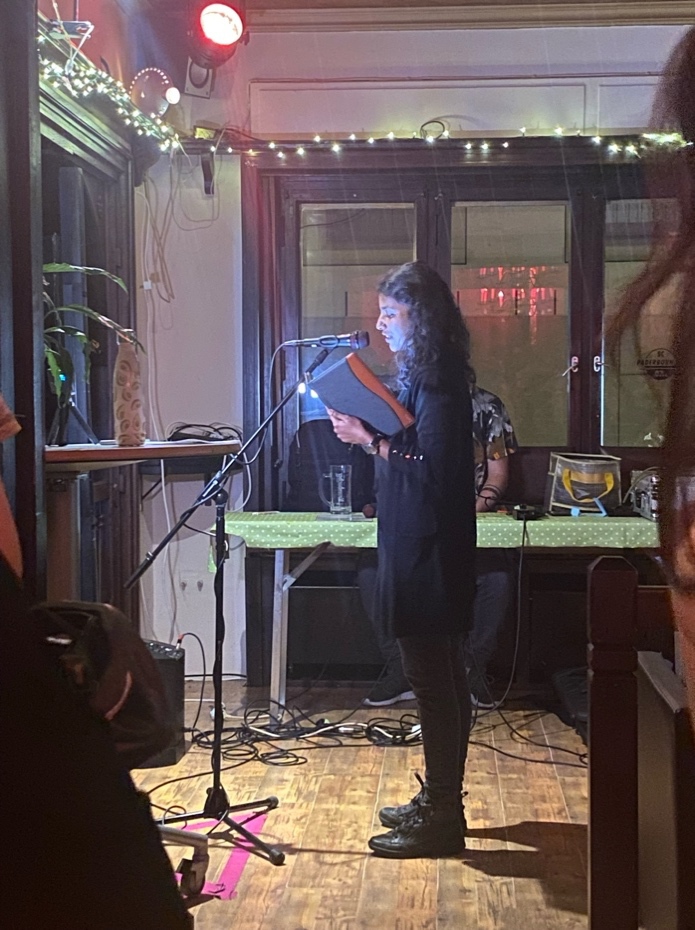 Zum Abschluss unseres Abends teilte eine mutige Frau ihre persönliche Geschichte darüber, wie sie nach Deutschland kam, obwohl ihre Wurzeln in Indien