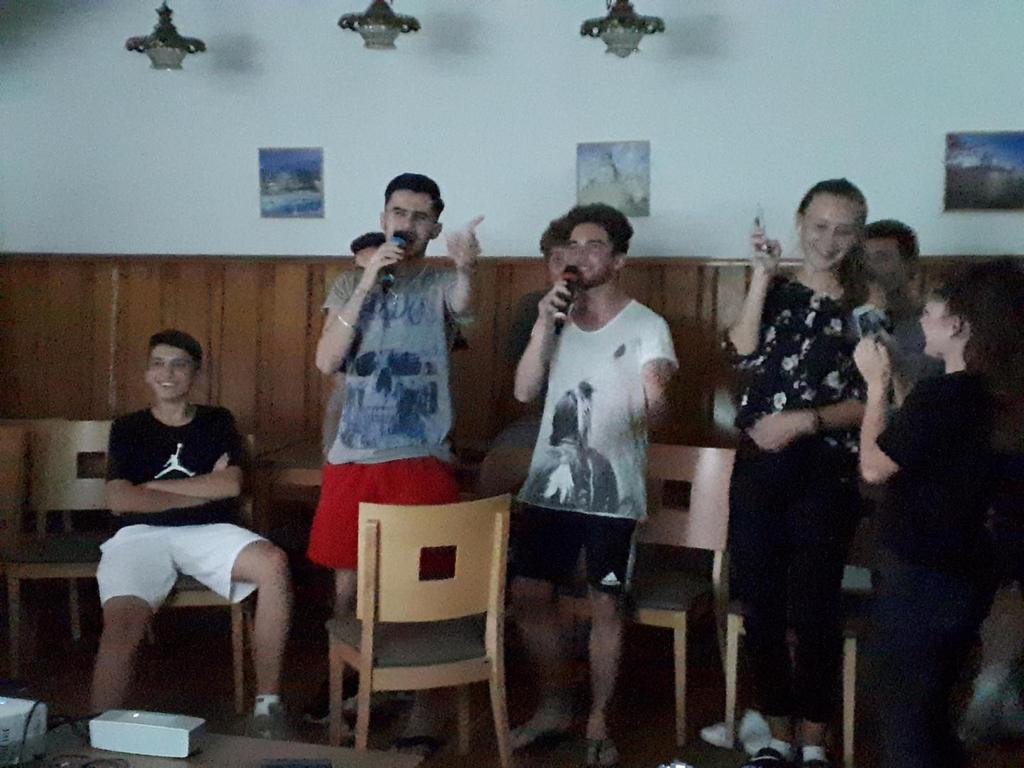 Am Abend wurden dann organisatorische Dinge geklärt und anschließend gespielt. Zur Auswahl standen Karten-/Gesellschaftsspiele oder SingStar. Uns ist aufgefallen, dass man tatsächlich sehr viel Spaß mit unseren Lehrern haben und auch mal das ein oder andere Liedchen singen kann. Dabei haben die Lehrer auch schon gut vorgelegt, doch unsere „Gesangstalente“ (Lukas, Lennart, Lukas, ...) haben alles getoppt! Es wurde sehr viel gelacht. Um 22 Uhr war dann aber auch Schluss mit lustig und alle gingen auf ihre Zimmer. Die ein oder andere wärmte sich mit ihrem Föhn noch etwas unter ihrer Bettdecke auf und ging dann auch schlafen.