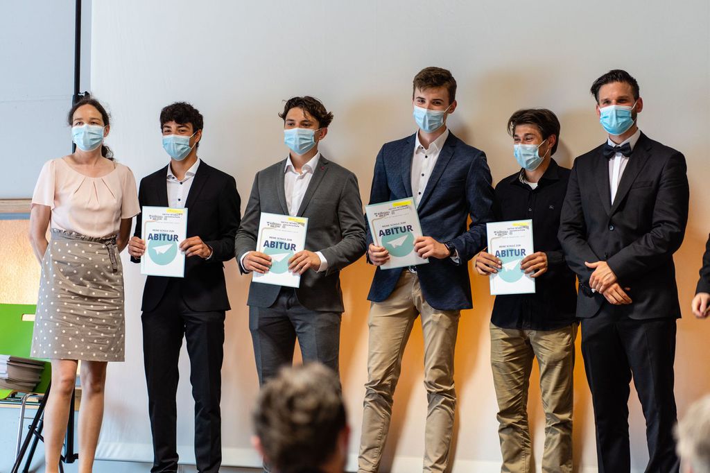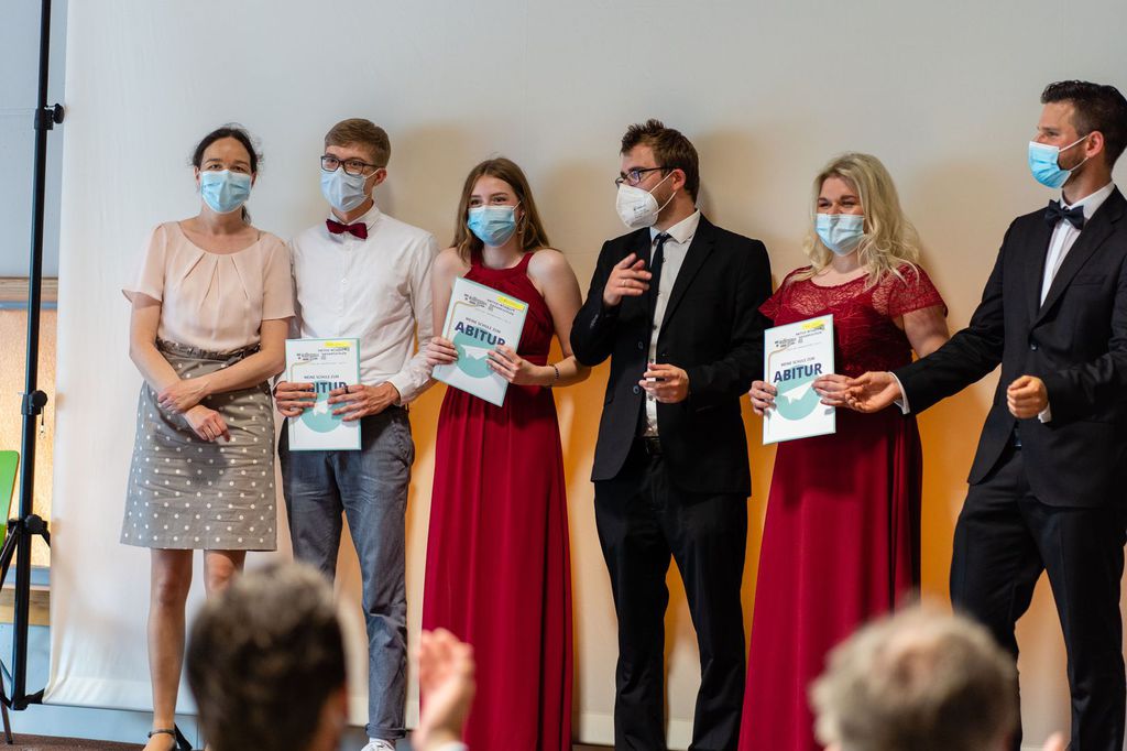 Die besten Abiturzeugnisse erhielten die Schülerinnen Lucie Zellerhoff und Darja Davydov aus Paderborn, die jeweils die Durchschnittsnote 1,3 erreichten. Verbunden mit den besten Abiturnoten ist ein Online-Stipendium des Karriere-Netwerkes e-follows für die beiden. Darja Davydov wurde darüber hinaus für ihr außerschulisches Engagement für ein Stipendium der Studienstiftung des deutschen Volkes vorgeschlagen. Sie nahm zudem erfolgreich am Landes- und Bundeswettbewerb “Philosophischer Essay” teil und wurde als jahrgangsbeste Abiturientin 2021 im Fach Philosophie von der Deutschen Gesellschaft für Philosophie e.V. ausgezeichnet. Hannah Marson und Nourlib Keriakes wurden derweil für ihre Verdienste als Schulsprecher*in und ihr langjähriges Engagement in der Schülervertretung geehrt.